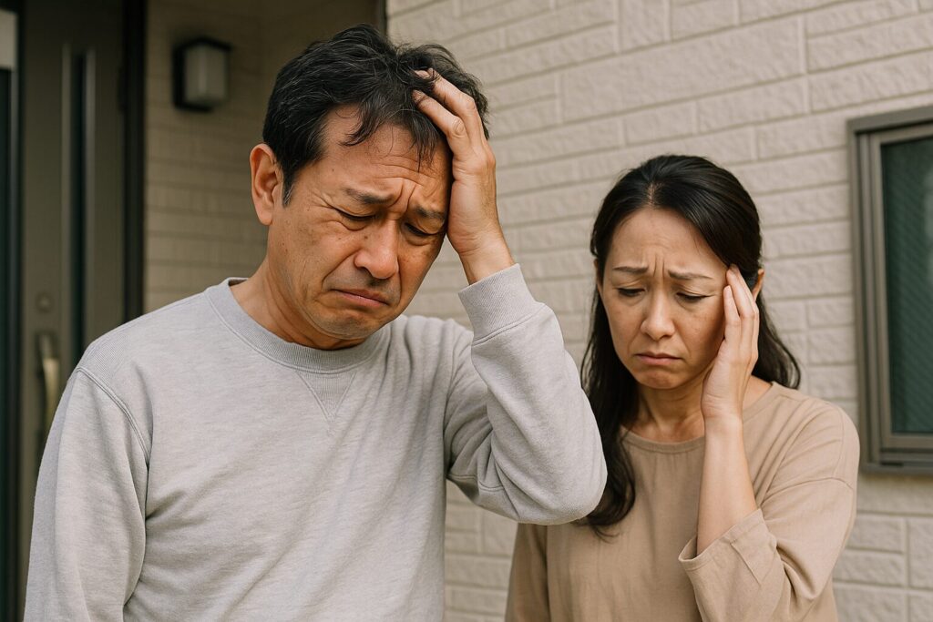 知り合いの業者に頼んで失敗し、困り果てる中年夫婦の様子